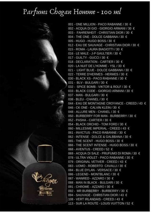 Voici la liste des parfums homme inspirer des grandes marques, pour plus dinfo contactez-moi sur instagram