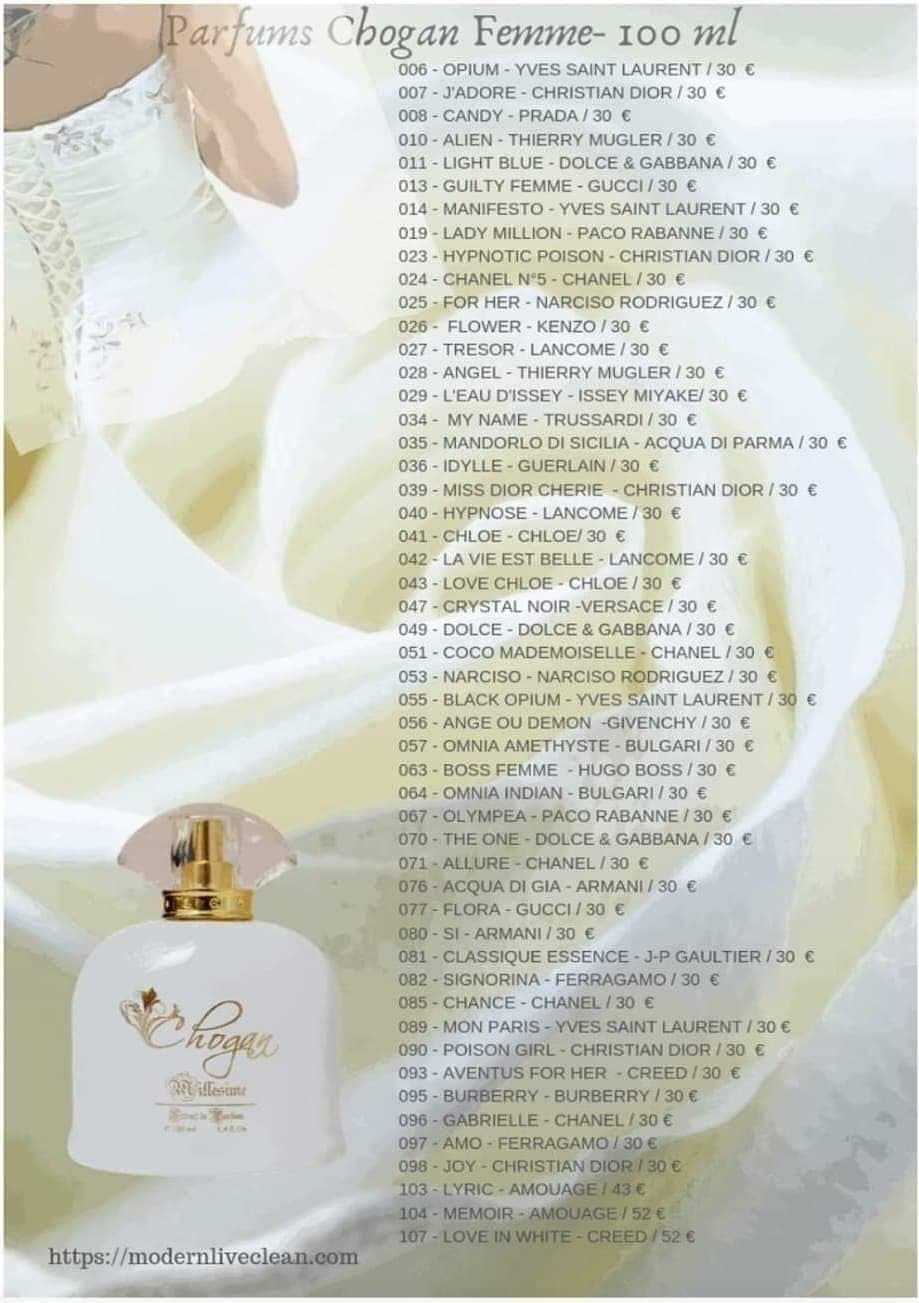 Voici la liste parfums Femme inspirer des grandes marque , pour plus dinfo contacter moi sur instagram